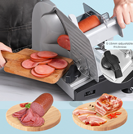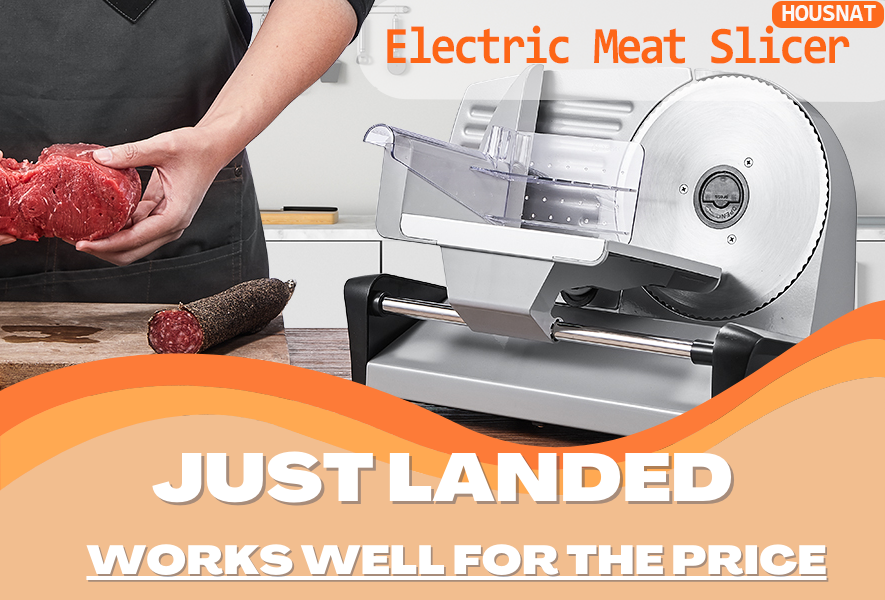 Meat Slicer, Housnat Kitchen Pro 200W Electric Deli Food Slicer with Two 7.5'' Blade(Serrated & Smooth) for Home Use, Precise 0-15mm Adjustable Thickness for Meat, Cheese, Bread, Include Food Pusher