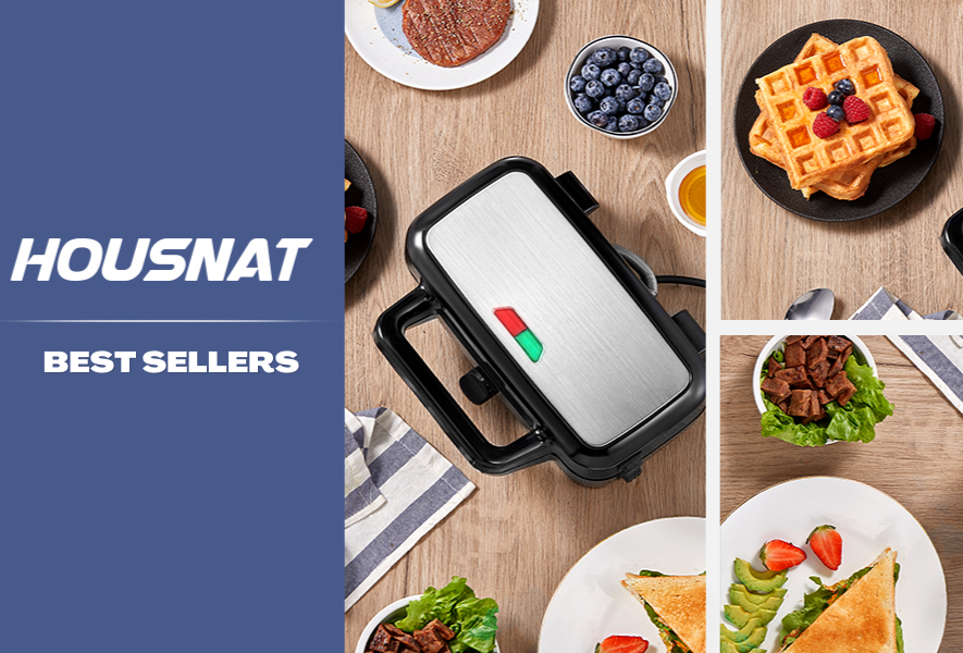 HOUSNAT 3 in 1 Sandwich Maker, Waffle Maker with Removable Plates, 1200W Panini Press with Interchangeable Non-Stick Plates, Indicator Lights, 5-gear Temperature Control, Silver/Black