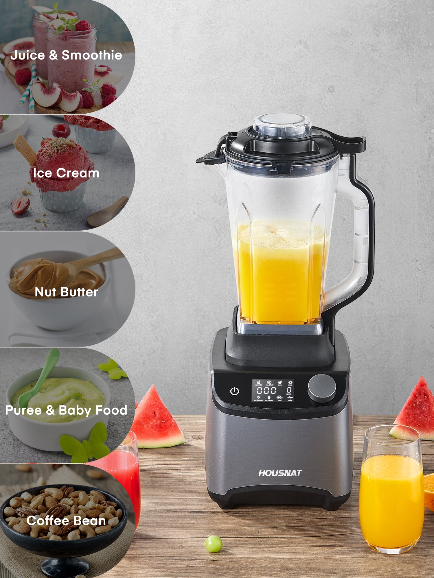 Smoothie Blender, Blender for Shakes and Smoothies, 1200W Professional HOUSNAT Countertop Blender for Kitchen, 8 Smart Presets, 8 Speeds, 60OZ BPA Free Pitcher, Infinite Rotary Control