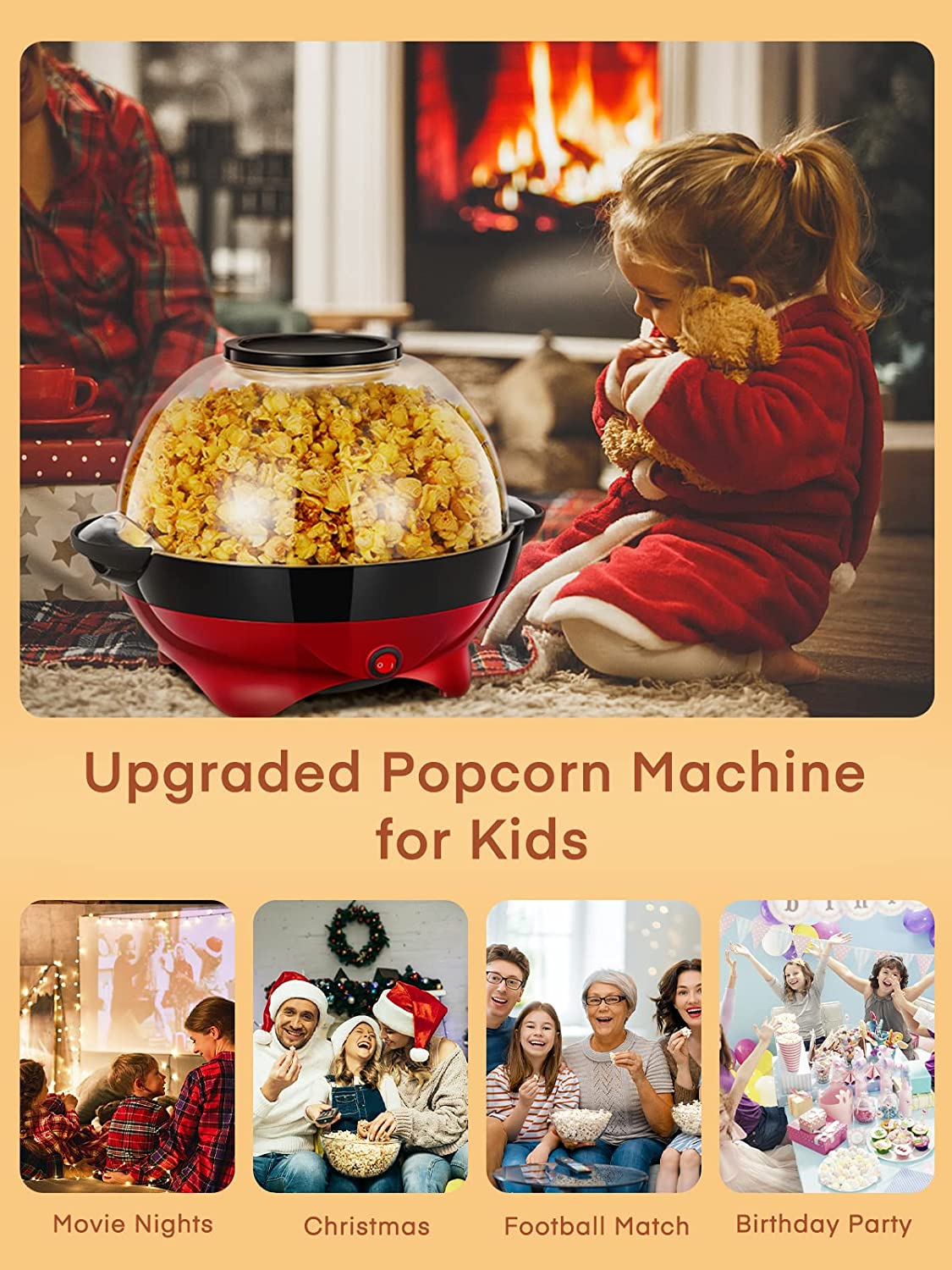 Popcorn Machine, 28 Cups & 6.3 Quarts, HOUSNAT 800W Electric Hot Oil Popcorn Popper with Stirring Rod, Large Lid for Serving Bowl and Convenient Storage, Removable & Nonstick Plate, 2 Measuring Cups